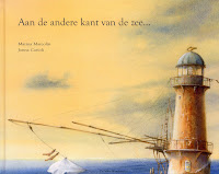 Eerst heb ik verteld dat ik in de bibliotheek werk en dat ik 3 keer bij hen in de klas kom. De les die ik geef is “Kom mee in het boek”, dus begon ik mijn les met het voorlezen uit “Aan de andere kant van de zee…” van Marina Marcolin en Janna Carioli. Het boek gaat over een jongetje die zich afvraagt wie er aan de andere kant van de zee woont. Hij stuurt een aantal keer briefjes via flessenpost, maar krijgt geen antwoord terug. Op een dag krijgt hij wél antwoord, van Lizzy en praat hij door middel van flessenpost met haar.